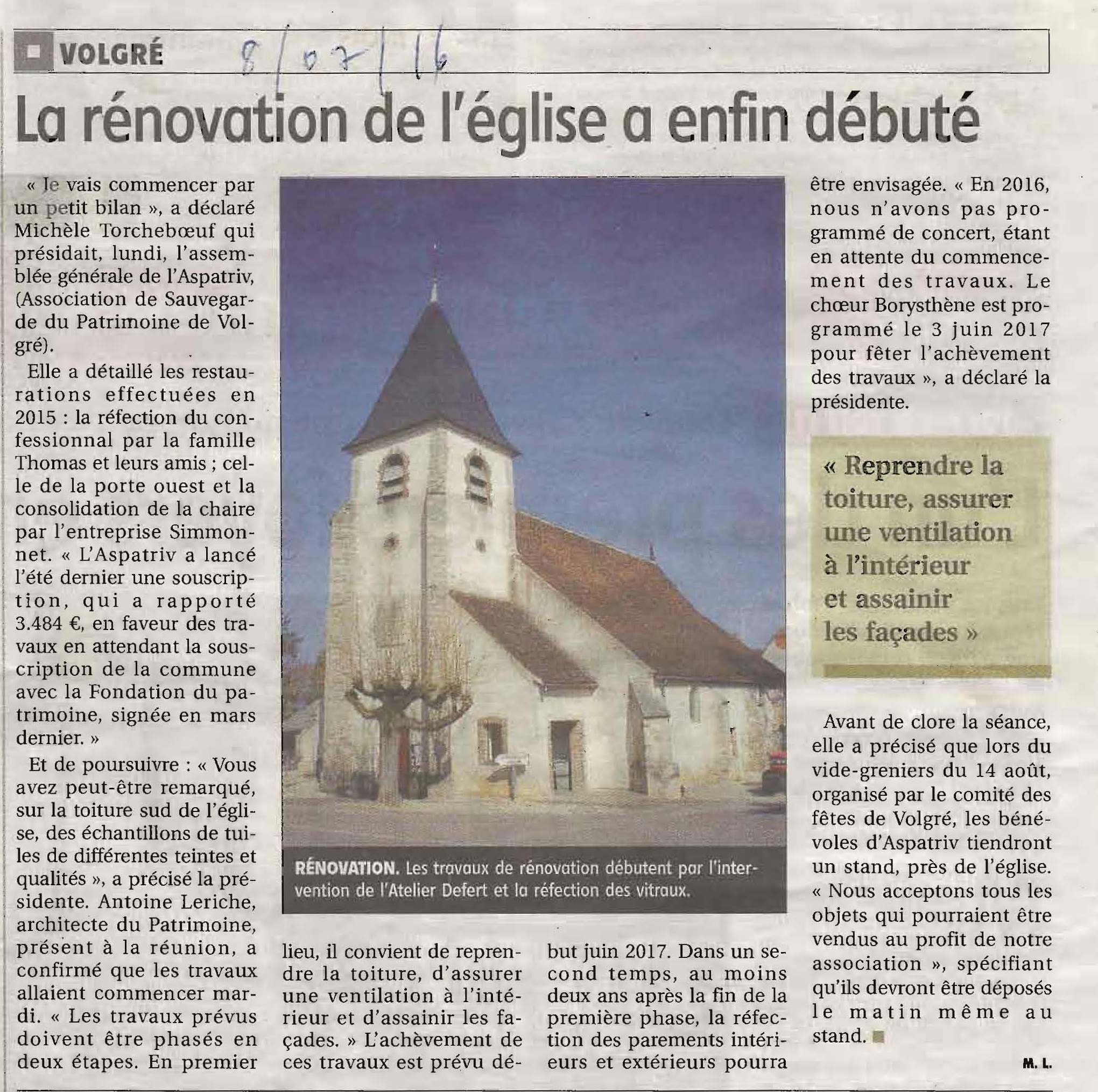 Les travaux de restauration concernant le maître-autel, le retable, le tabernacle, le tableau de la Nativité, objets classés M.H., vont commencer. L'ASPATRIV et la commune, avec la Fondation du Patrimoine, lancent une novelle souscription (...)