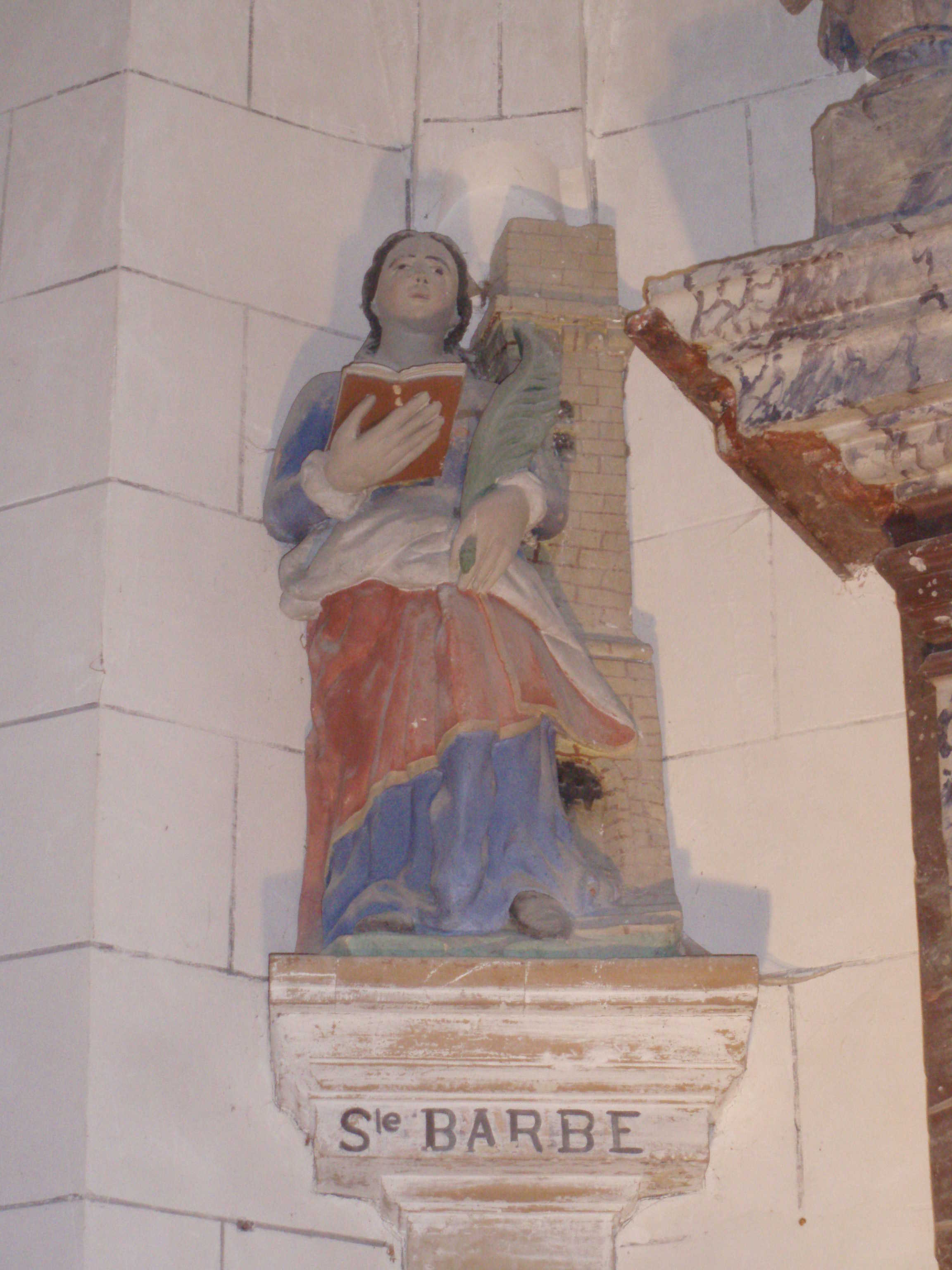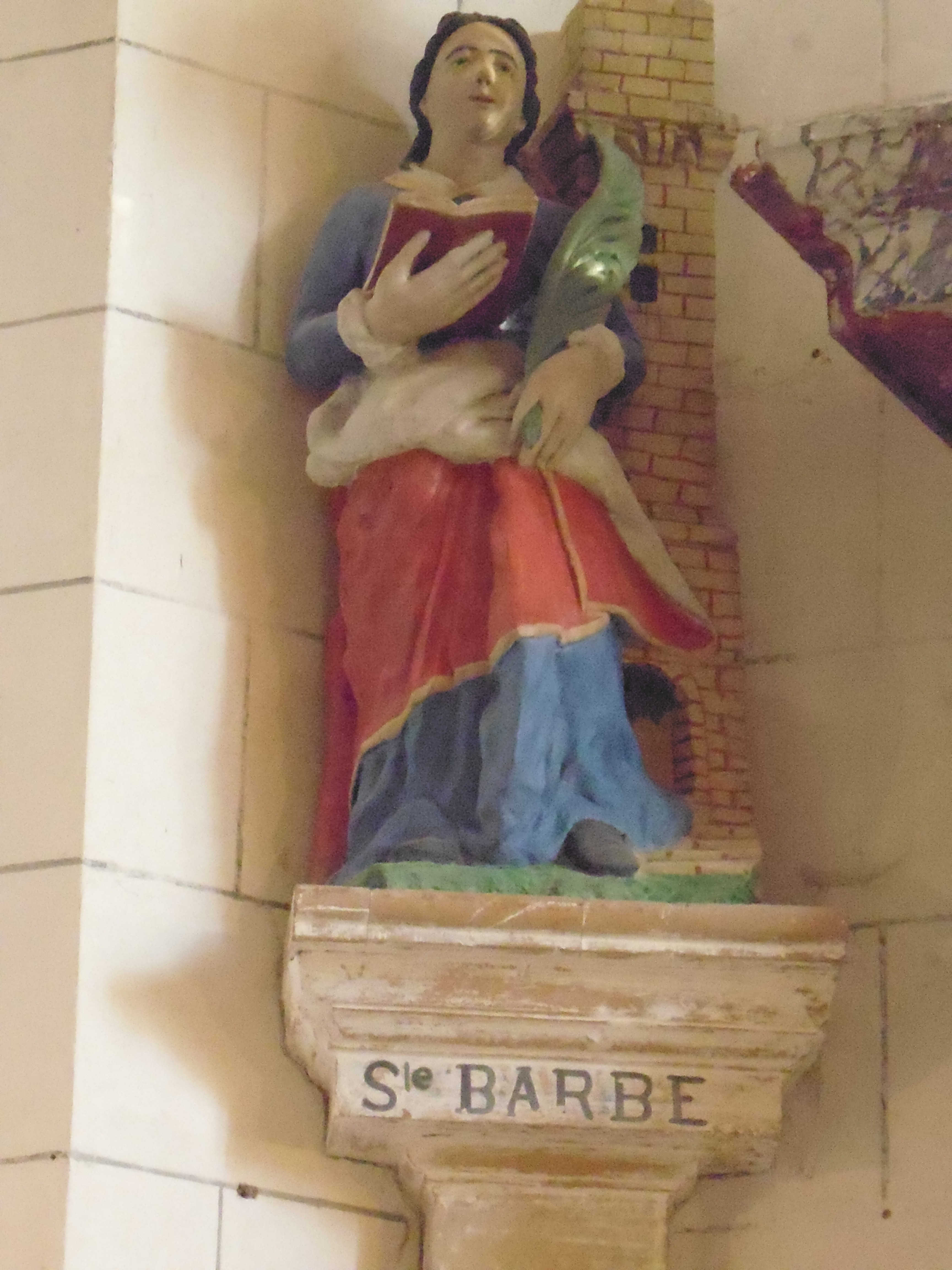 A gauche : Statue de Ste Barbe avant sa restauration (2015). A droite : après la restauration (2016).