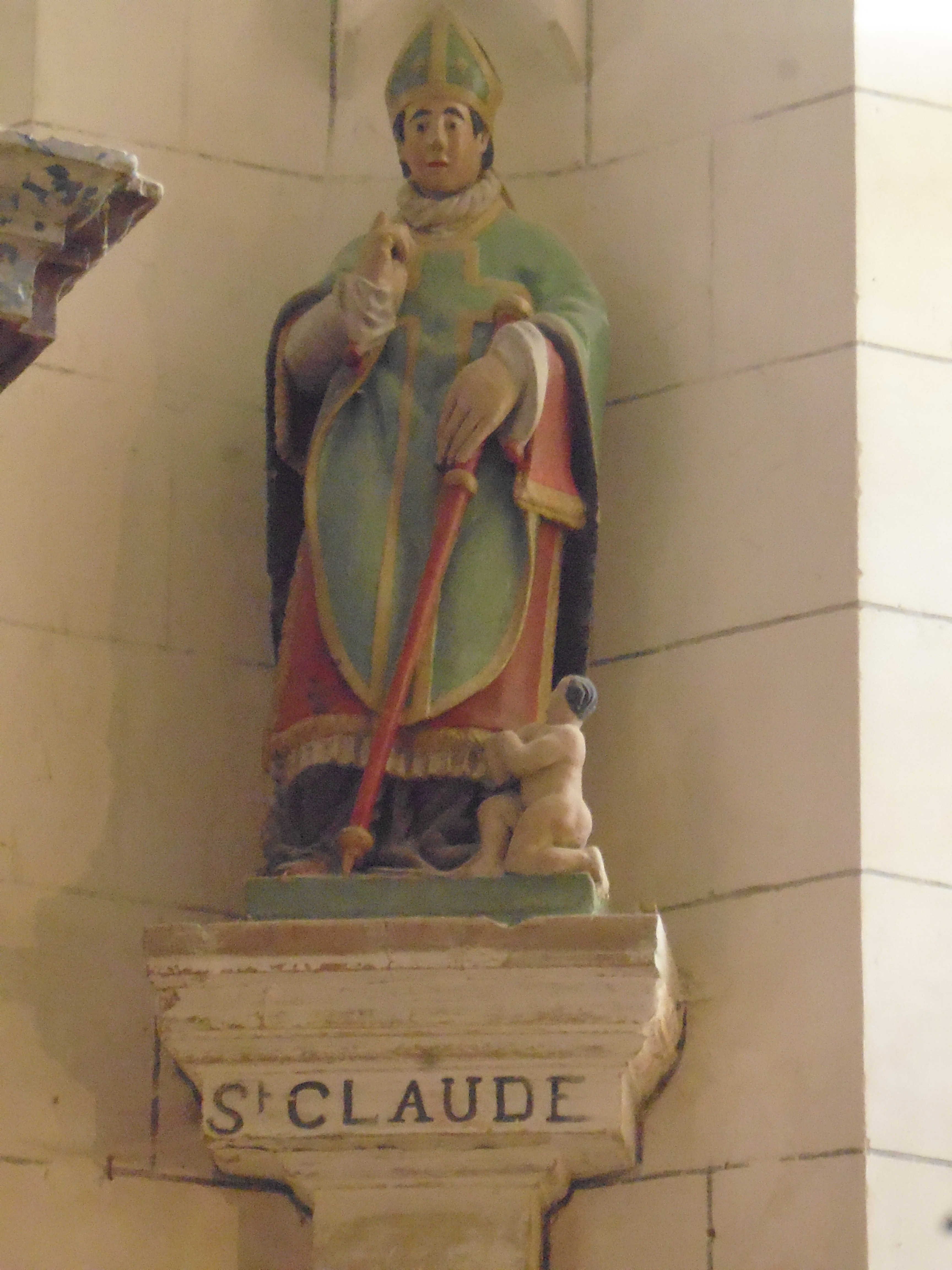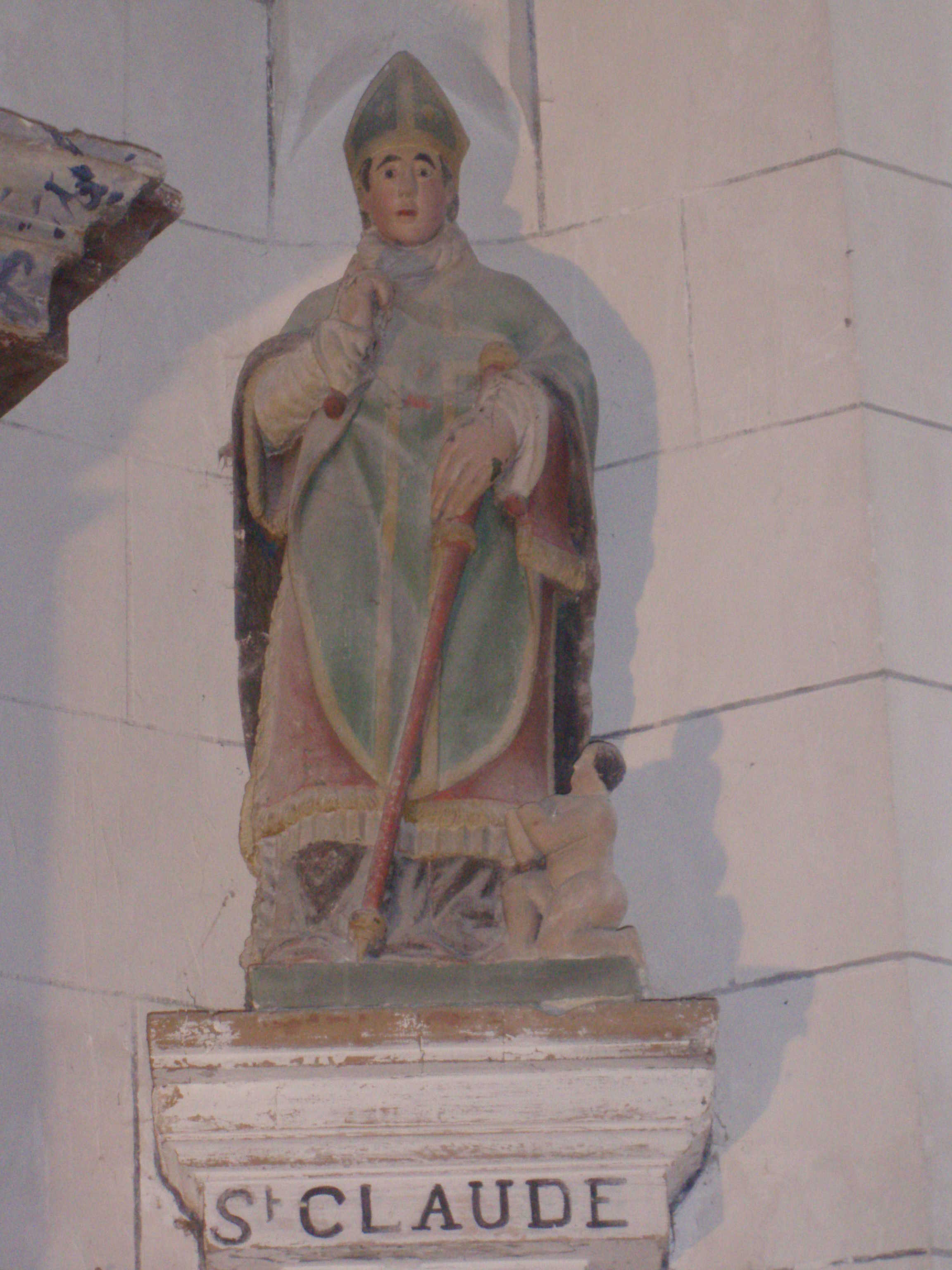 A gauche : Statue de St Claude avant sa restauration (2015). A droite : après la restauration (2016).