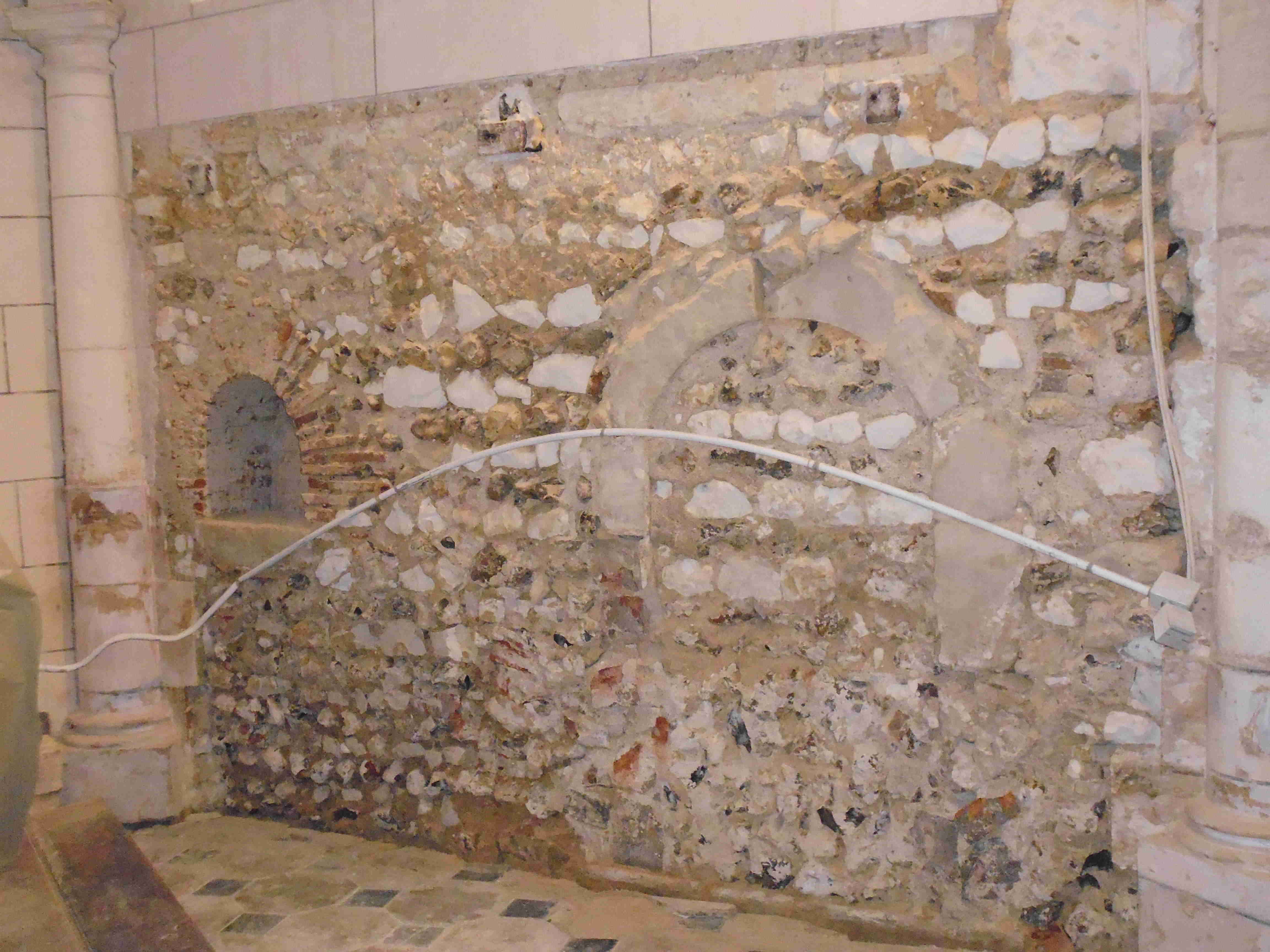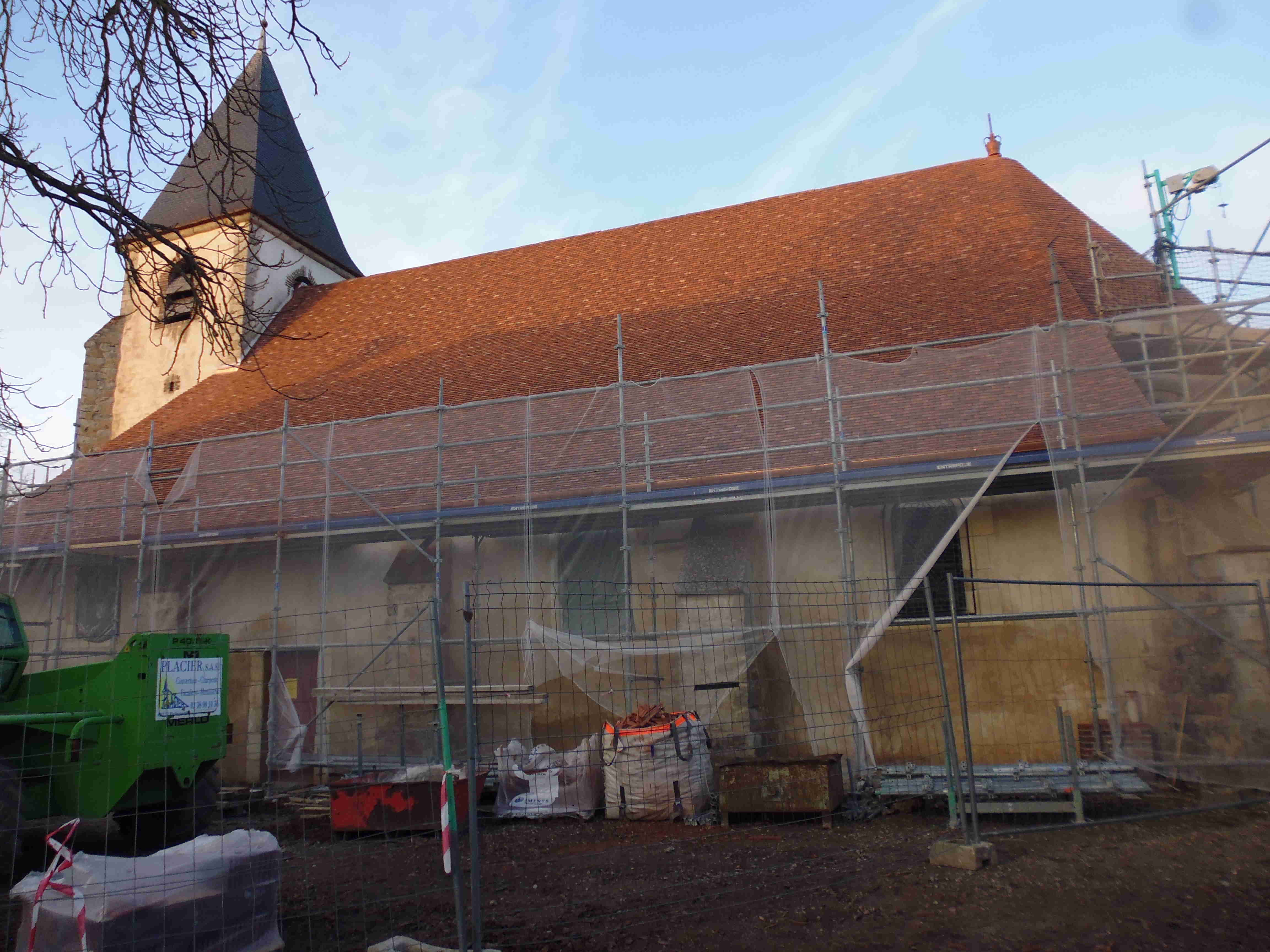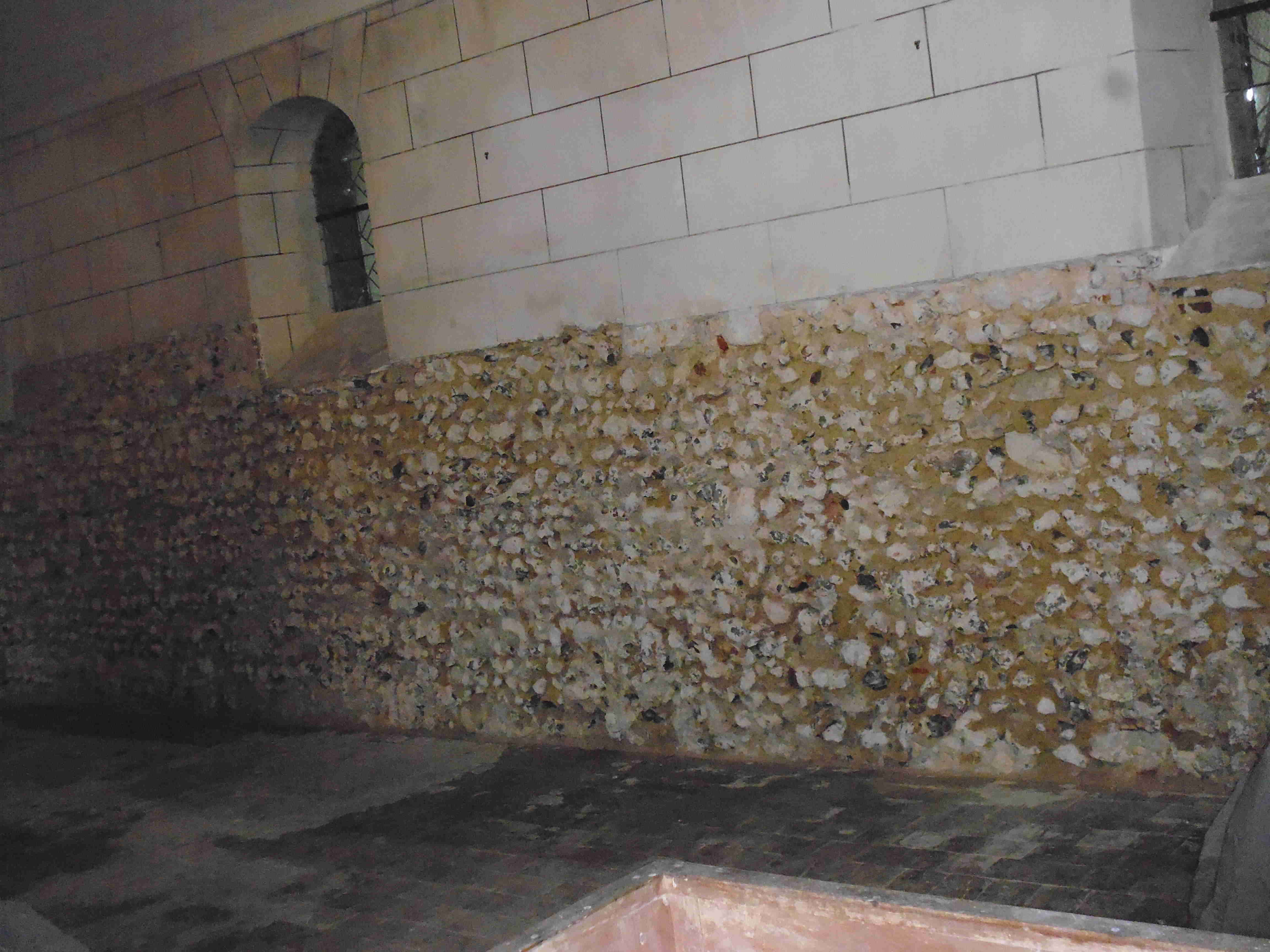 Mur du choeur et mur nord en cours de restauration (2016-2017).