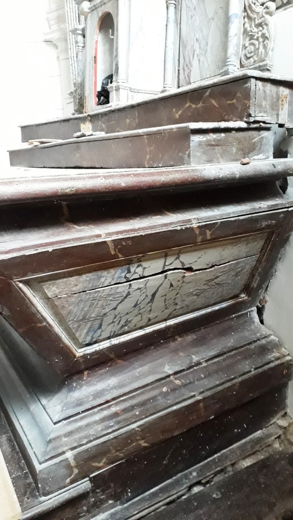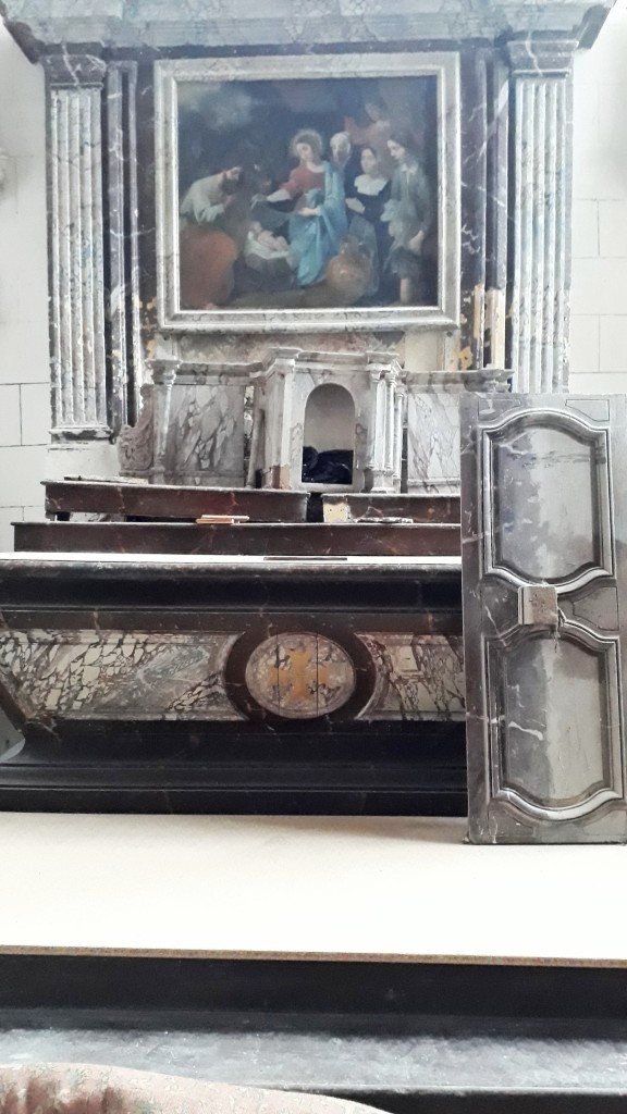 Depuis 2019, ces gros travaux étant terminés et payés, il reste à s'occuper du mobilier intérieur classé, en mauvais état : maître-autel et retable effondrés, tableau de la Nativité dégradé et empoussiéré, fragment du plafond qui s'effrite, 2 colonnes dégradées. Le maître-autel, la tabernacle et le podium doivent être démontés entièrement et restaurés en atelier et une chape à la chaux doit être réalisée, afin de consolider la structure avant remontage. Frais des travaux : environ 21 000 €.